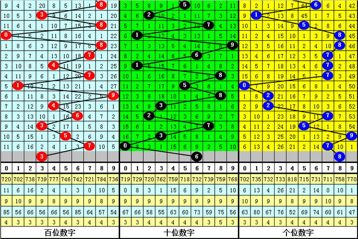 012路分析:历史上成列三第282期同时奖号中,012路奖号总个数比为28:13:19,012路奖号轮空期数比为3:9:5,本年第282期展望1路号码走冷轮空,看好012路比开出2:0:1。